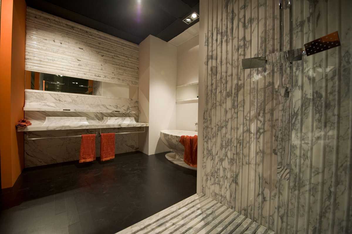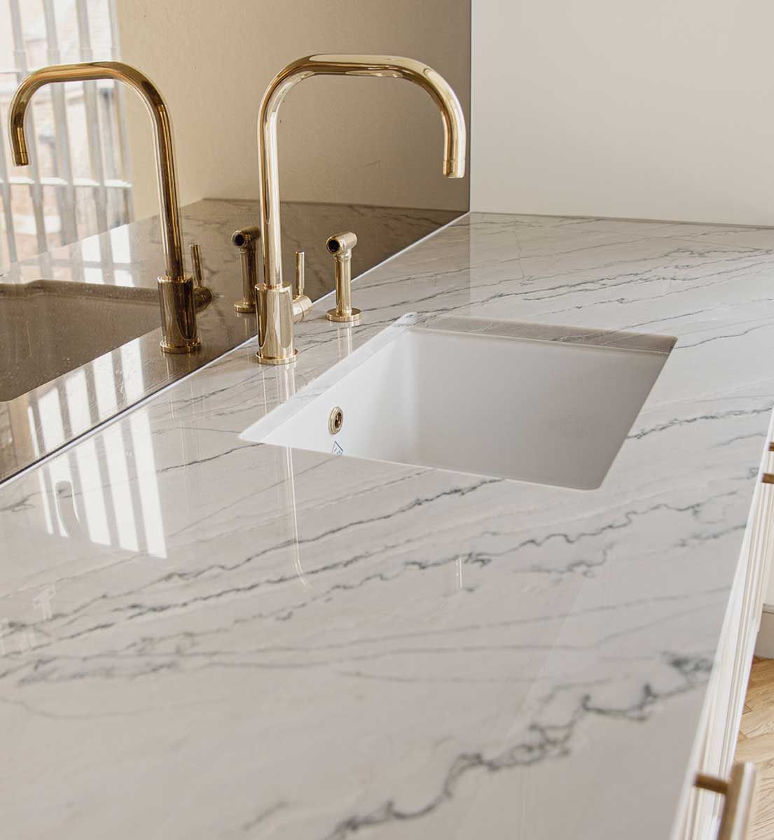 Ogni elemento è progettato in base alle esigenze specifiche del cliente: si può lavorare in massello o con rivestimenti, integrare lavelli scavati nel blocco, sviluppare gole, bordi sagomati o tagli su disegno. Tutto viene eseguito internamente, con un controllo completo sulla filiera e un dialogo diretto con chi progetta.
