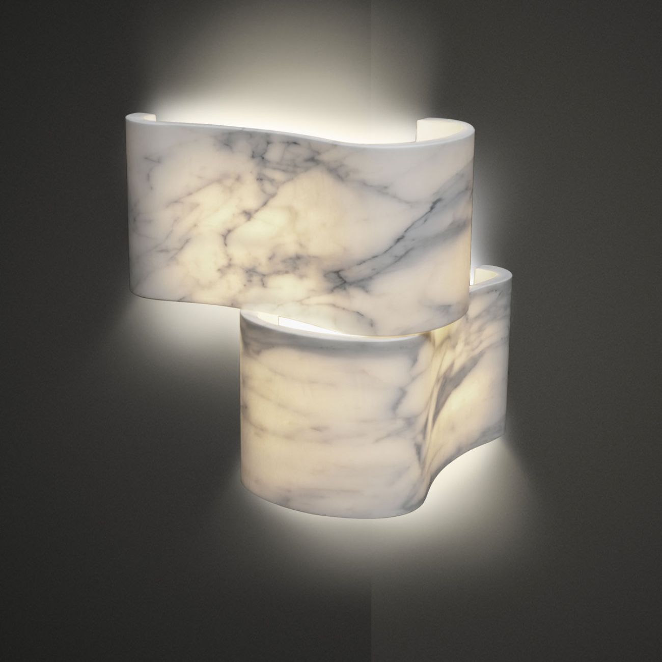 Elle è un’applique scolpita in marmo che interpreta la luce come passaggio, soglia, accoglienza.